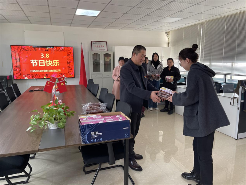 春意融融,百草吐芳。在國(guó)際勞動(dòng)?jì)D女節(jié)來(lái)臨之際,為了讓全公司女職工度過(guò)一個(gè)充實(shí)愉快、富有意義的節(jié)日,3月 8日下午,江西豐日冶金科技有限公司(以下簡(jiǎn)稱(chēng)“豐日冶金”或“公司”)董事長(zhǎng)丁林廠代表公司為女職工派發(fā)了精心準(zhǔn)備的節(jié)日禮物,同時(shí)向一直以來(lái)辛勤工作在一線的女職工們送上節(jié)日的祝福。